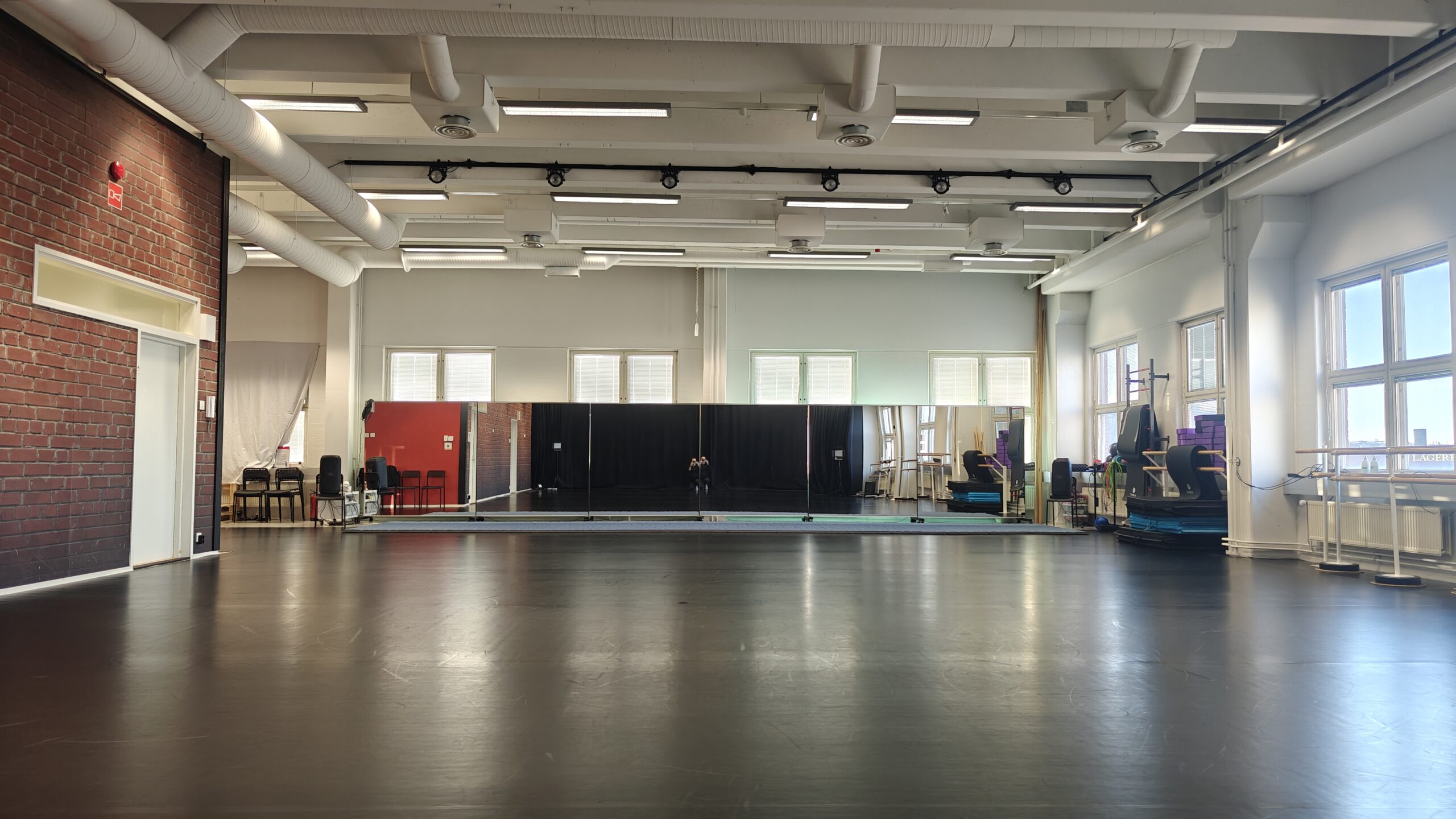 Tanssisalissamme on koneellinen ilmanvaihto. Kerroksesta löytyy 4 WC:aa, suihkut, pukuhuoneet.
