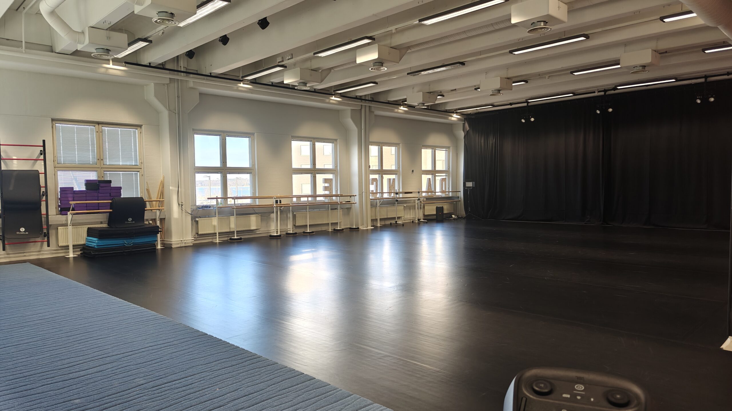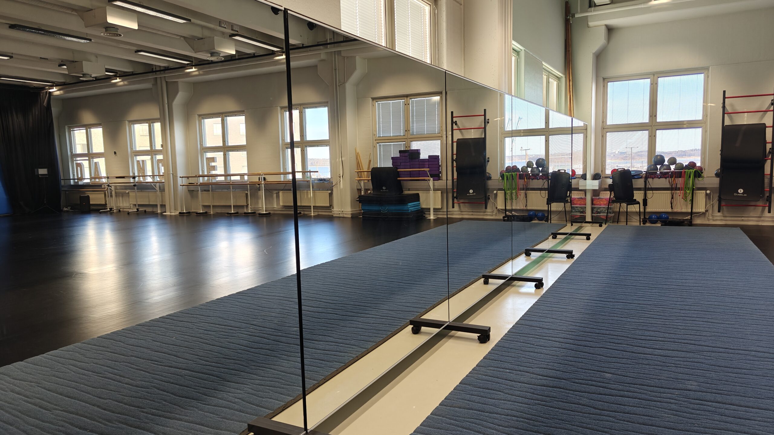 - 4 kpl siirrettävää balettitankoa (2,40m, 4 tanssijaa per balettitanko, jos latetaan tangot salin keskille)