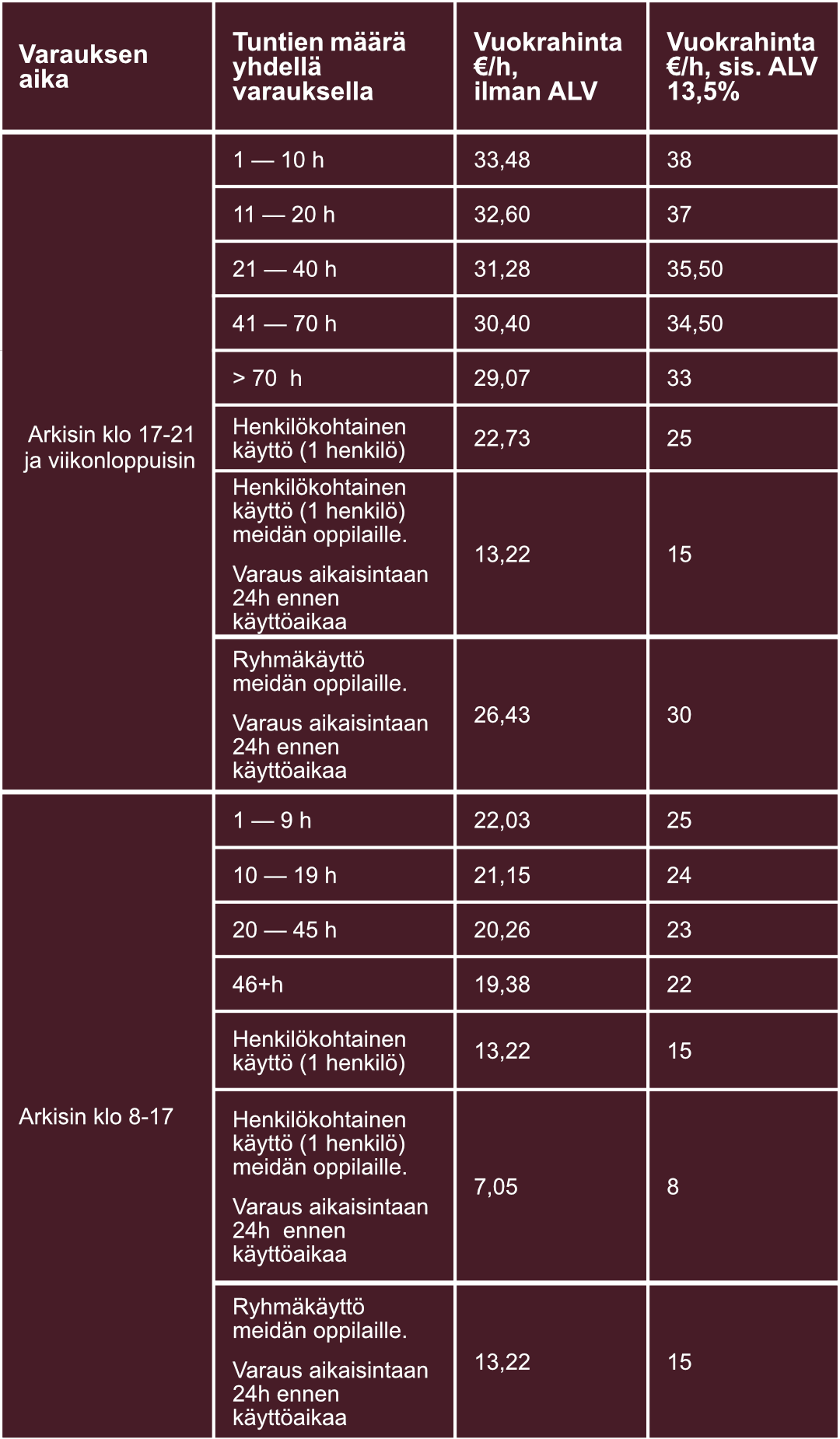 Tuntien määrä lasketaan lukukaudessa yhdellä varauksella (kevätlukukausi: 1.1.-30.6./ syyslukukausi: 1.7.-31.12.). Erilliset varaukset lukukaudessa ei lasketa yhteen.